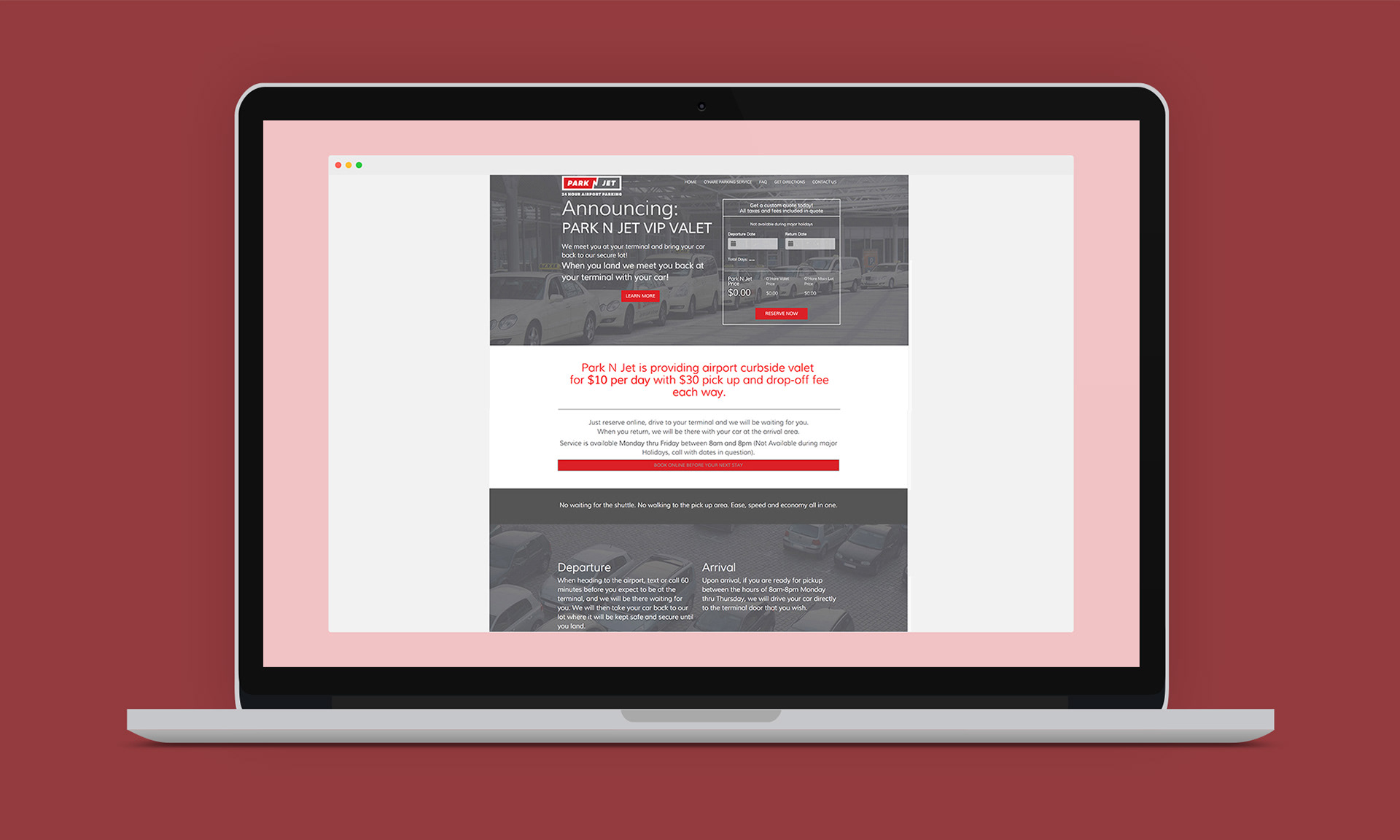 This is a landing page I designed while working for Digerati Group for their Client Park N Jet, in Chicago Illinois.