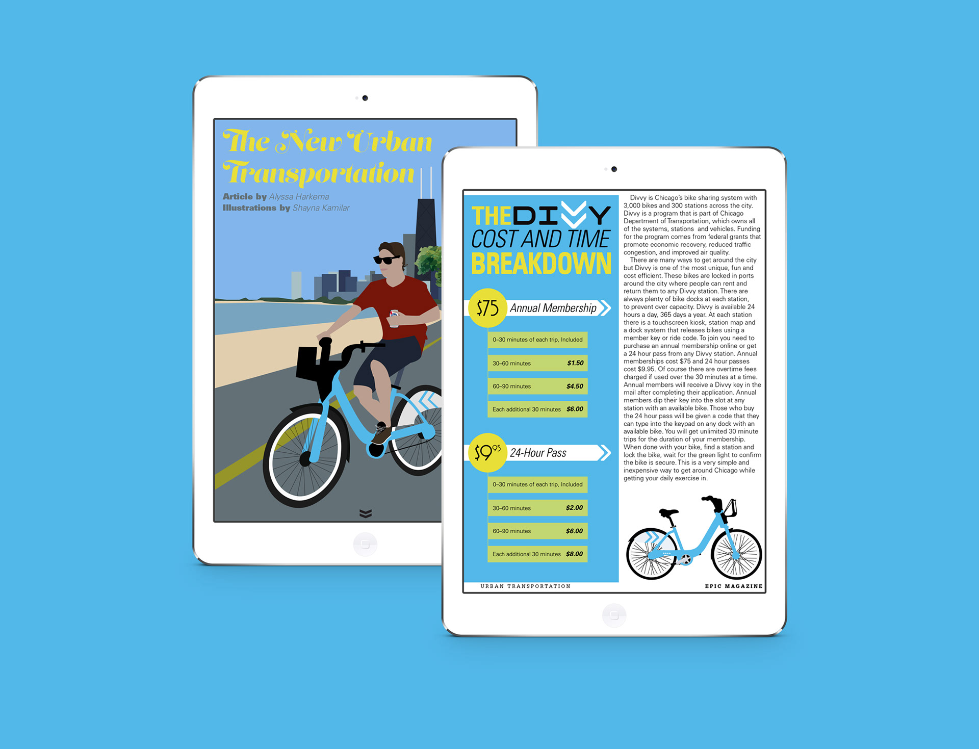A few pages from the layout I designed and illustrated for issue #5 of Epic Magazine, from Robert Morris University Chicago. I was the editor-in-chief of the issue. The issue is still to be completed, but will be available on iTunes for iPad.